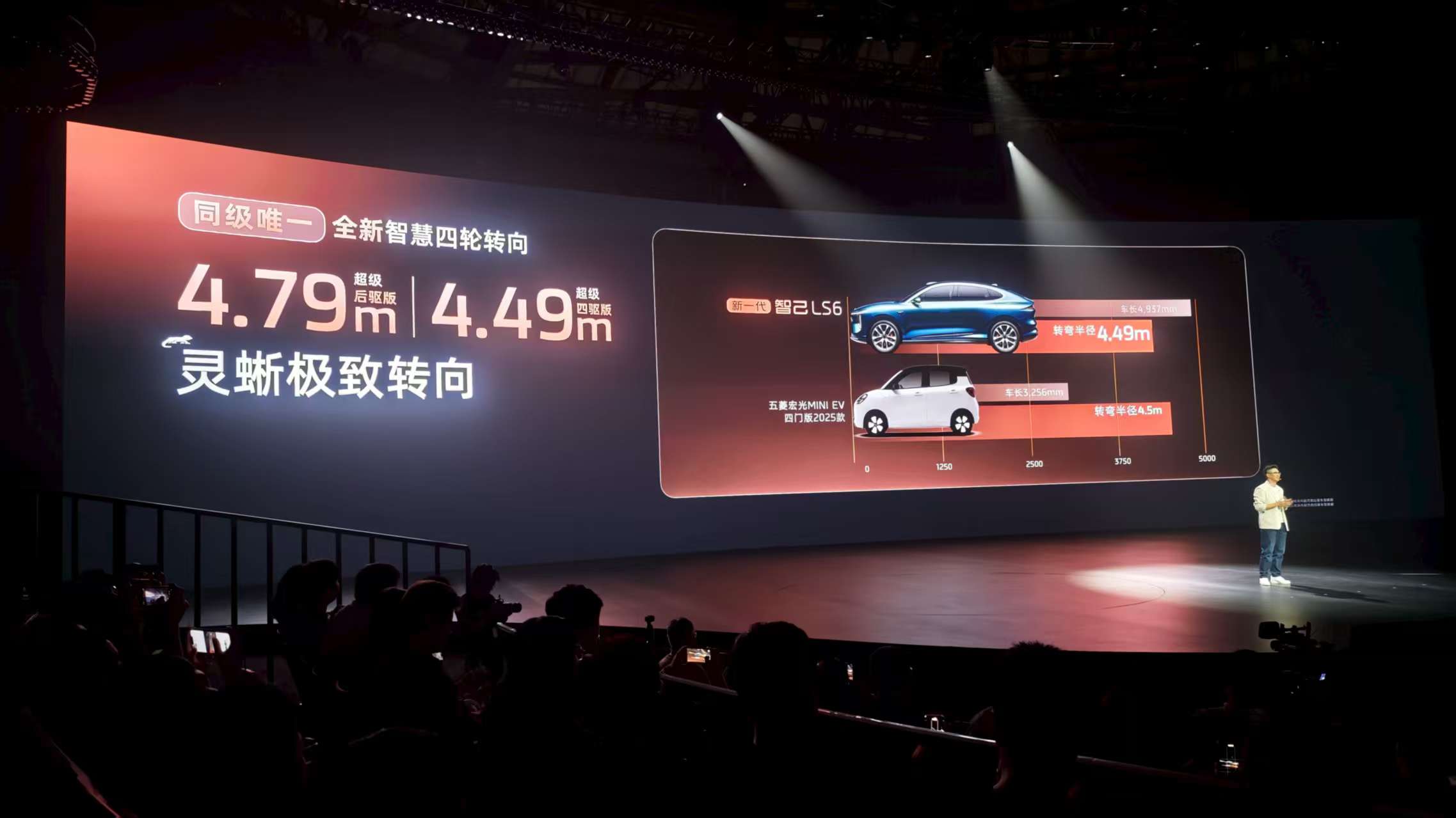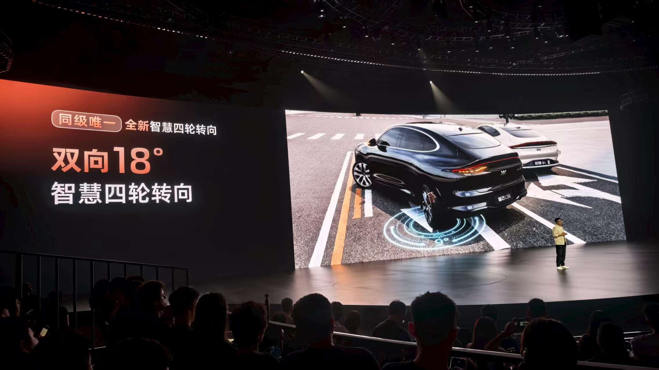 对于一辆优秀的SUV来说,底盘调校是决定驾乘体验的关键。全新智己LS6搭载新一代灵蜥数字底盘,标配四轮转向系统,最大18°后轮转角,超级后驱和超级四驱转弯半径分别可低至4.79米和4.49米。这个数据意味着,即使是中大型SUV的车身尺寸,在狭窄街道、复杂停车场也能灵活穿梭,完全没有大车的笨重感。
