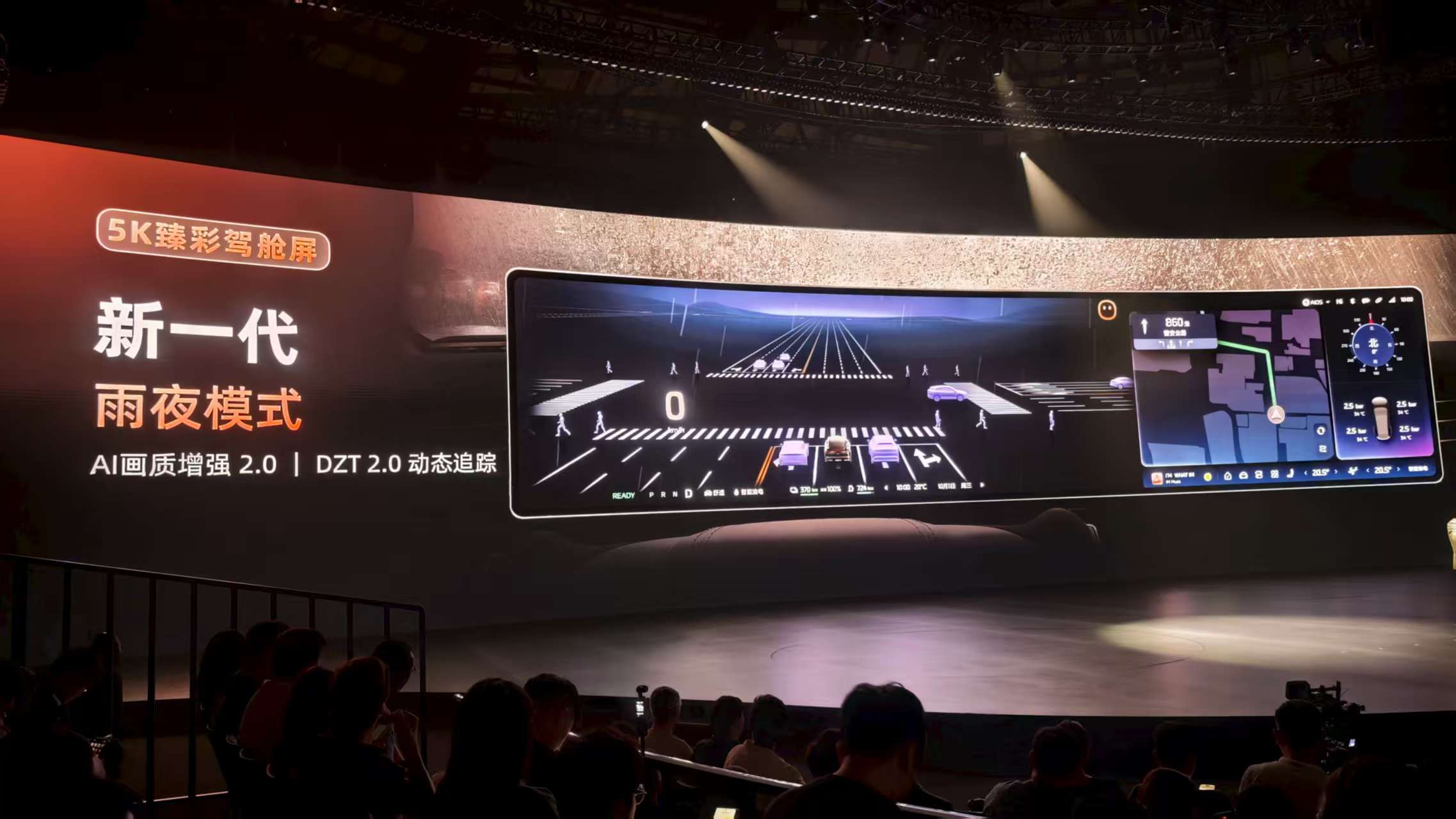 全新AIOS1.0交互系统的搭载,更是让车内的科技氛围拉满。全新雨夜模式,在雨天行车时,能够更加清晰地显示路面情况,提升驾驶安全性;全新的DZT动态区域追踪2.0,能够更精准地识别周围车辆和行人;全新设计的导航光效指引,通过屏幕上方的动态光效提示左右转,驾驶员只需用余光就能知晓路线,无需频繁低头查看导航,进一步提升驾驶安全性。